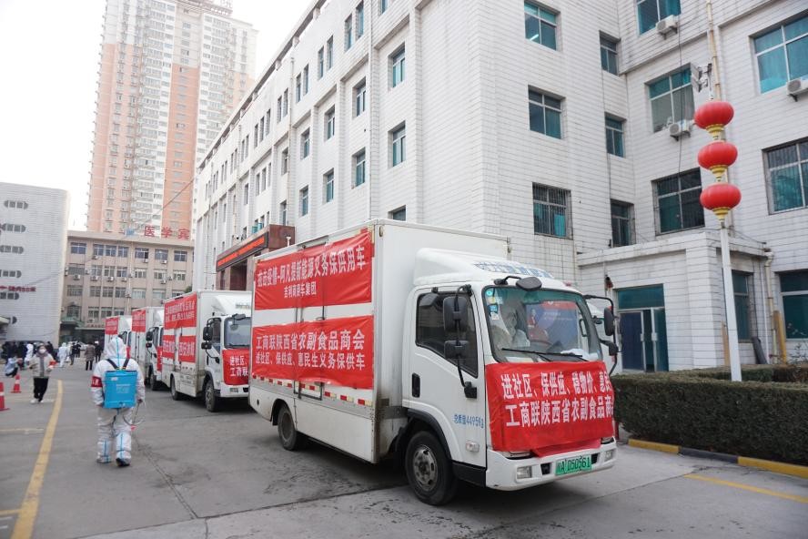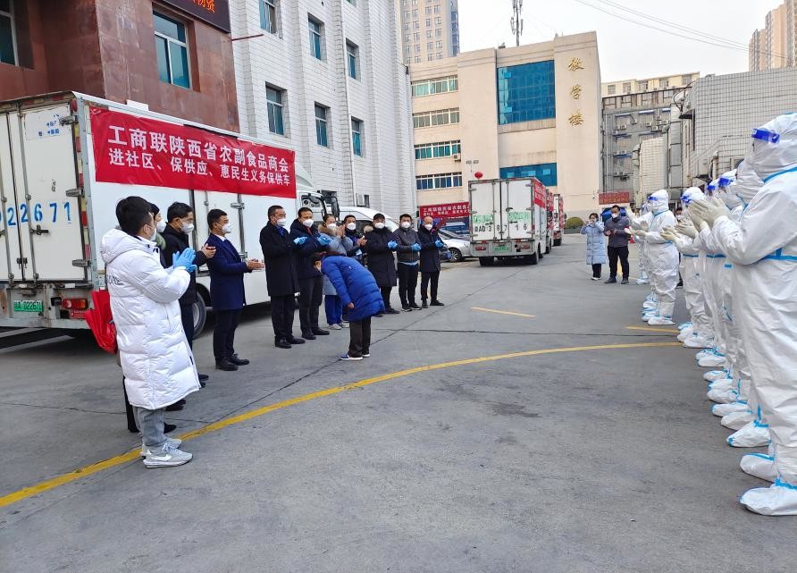 据悉,为有效保障居民的“菜篮子”供应,从12月28日起,陕西省农副食品商会积极动员会员企业深入西安疫情一线封控区,组织50余辆义务保供车开展“进社区、保供应、稳物价、惠民生”爱心活动,为一线医务人员、一线新闻工作者、大专院校、封控社区居民提供生活物资保障。