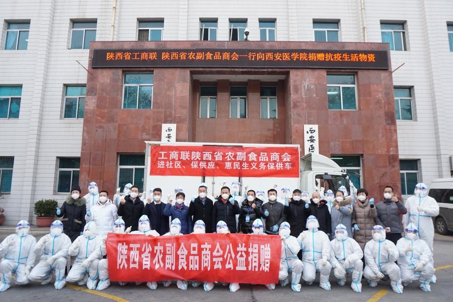 近日西安市疫情防控形势严峻,1月2日,在陕西省工商联统筹安排下,陕西省农副食品商会组织大方集团、方欣集团、西安糖酒集团、博蒂斯诺集团、蓝田福润企业食品公司、阿凡提新能源集团、鲜生活生鲜超市等会员企业将40余万元的生活物资捐赠给我校,为一线抗疫工作人员提供后勤保障。