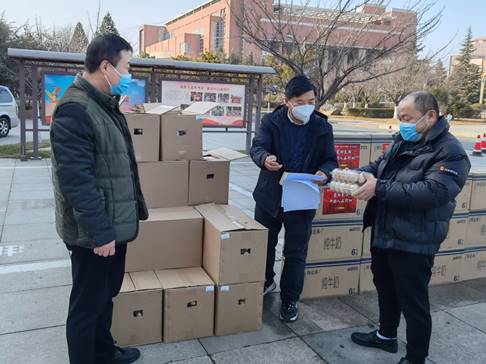 1月11日,校工会对我校三个校区464名坚守一线的抗疫人员进行了慰问。他们中有在职教职工、志愿者、临聘人员。校工会委托西安每一天商品中心精心准备牛奶、鸡蛋等慰问品,送达三个校区,发放至每一位坚守一线的工作人员手中。校党委副书记熊冬梅为含光校区抗疫一线教职工发放慰问品。她赞扬教职工们以大局为重,舍小家为大家,不分日夜地辛苦劳作,为师生提供了全方位保障。她代表校党委感谢大家,同时希望大家注意身体,在当前疫情防控常态化下努力工作,继续打好疫情防控的攻坚战。