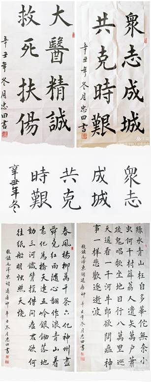 异彩纷呈的“艺心抗疫”是大家最喜爱的栏目,这里留下了36位教职工和18位教职工子女的作品。行云流水的书法、巧夺天工的绘画、朗朗上口的诗歌、栩栩如生的刺绣、还有隔着屏幕都能感受到香味的美食作品,给大家带来了足不出户就能欣赏到的艺术盛宴。教职工子女们也用充满童心的笔墨为抗击疫情的一线英雄立像。