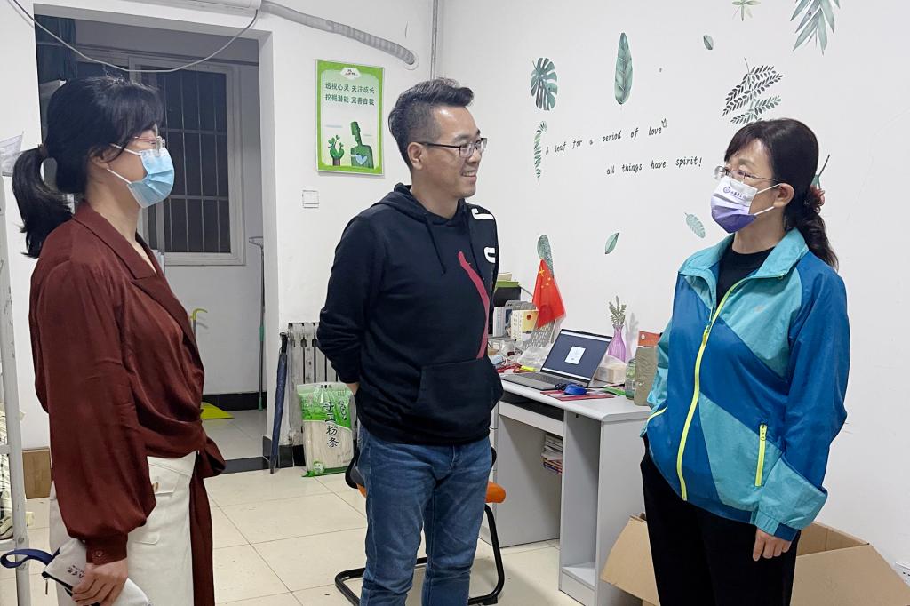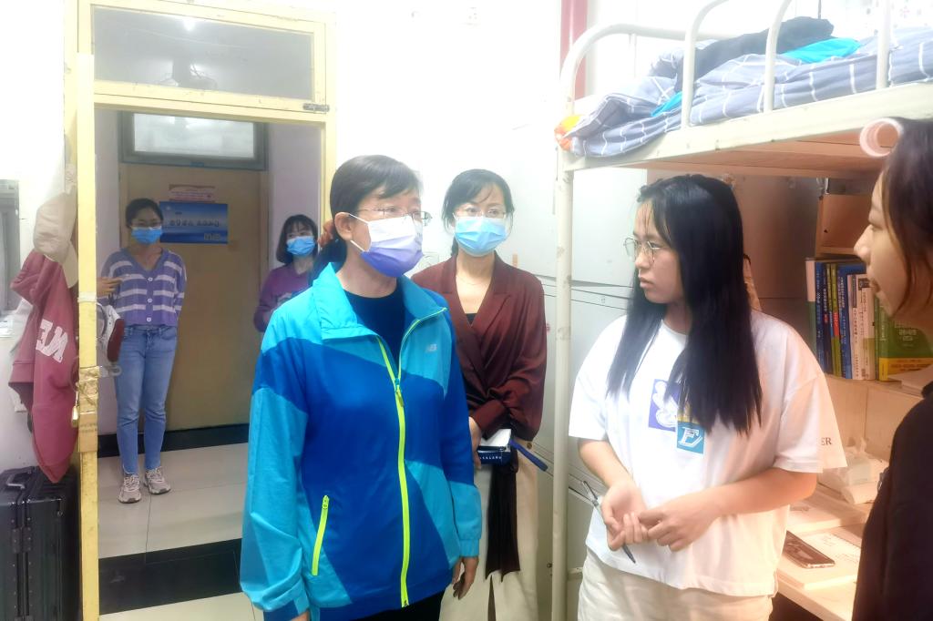 在开学疫情防控特殊时期,为切实了解校园静态管理期间学工干部进驻公寓及学生学习生活状况,9月21日晚,校党委副书记熊冬梅深入学生公寓检查看望坚守在防疫一线的各二级学院值班学工干部和学生。学生处、校团委、各学院值班教师陪同走访。