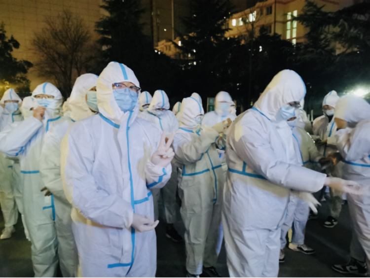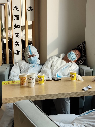 走进学生生活区的那一刻,我就被眼前的景象感动着,心里泛起一阵阵波澜。数九严寒、晨曦初露,一位位穿着防护服的“小白”,要么小心翼翼地推着餐车给同学送去热腾腾的早餐,要么手提暖水壶小跑着给同学送去暖心的热水...谁能想象,这些昨天还稚气未脱、上课会时不时调皮一下的孩子,今天穿上这身洁白的防护服,便成了为同窗好友提供生活保障的战士。肃穆静谧的校园,正是因为有这些最可爱的人,在此时显得那么朝气蓬勃、生机盎然!